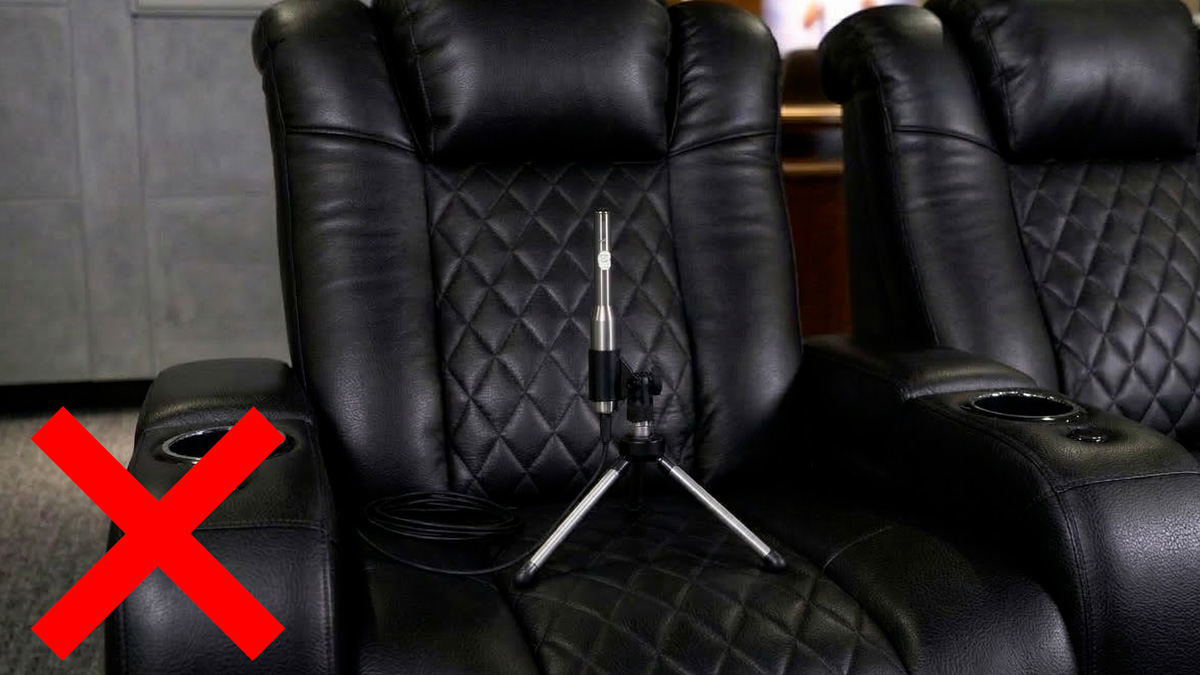 The most common calibration error is placing the measurement microphone in front of a high-back headrest. The headrest blocks sound from height and surround speakers, causing the receiver to measure an incorrect room acoustic profile and apply compensations that degrade performance. Always recline the chair and position the microphone at ear height with a stand.
