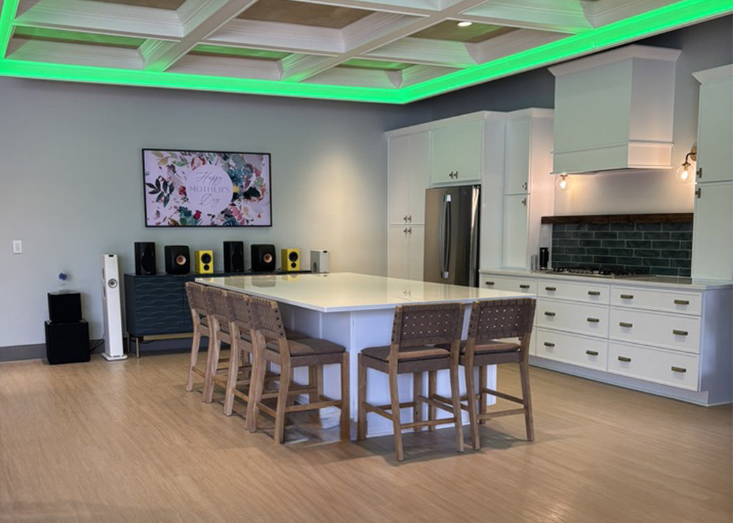 Our Experience Center is designed to allow you to experience what it feels like to live in a true smart home. From lighting and shadingto a whole house music system, this kitchen and living room area will make you feel right at home.