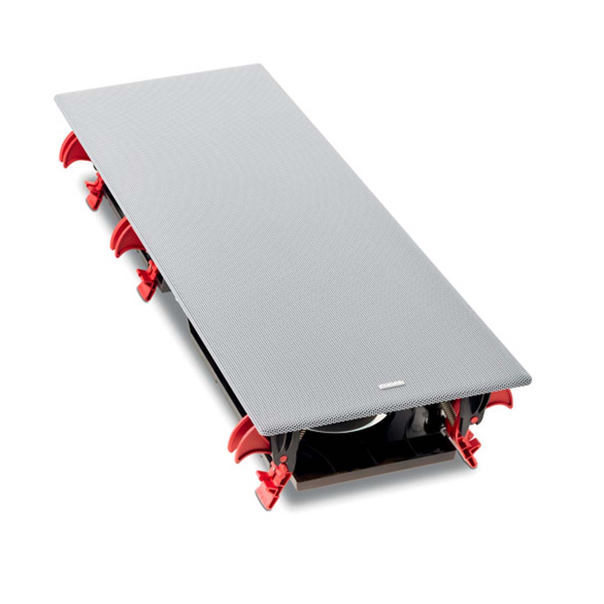 On this in-wall speaker, the mid-treble plate can be rotated by 90° for use as a left, center, or right loudspeaker to aim at the listening spot. The tweeter and mid-levels can be adjusted to adapt to the room acoustics: this will result in the best performance regardless of the environment.