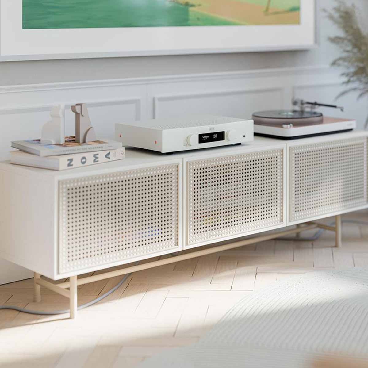 It is also a genuinely easy amplifier to place. It is full rack width, but it is not overly tall, and it is not comically deep, which matters if your cabinet is more “living room furniture” than “audio shrine.” And it comes in both black and white, which is a small thing that ends up being a big deal when you are trying to make a system look intentional in a shared space. The white version even has subtle hardware details that add a bit of character without turning it flashy.