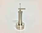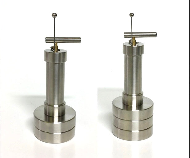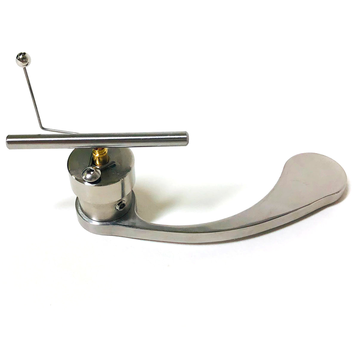 There are several size options for the Tru-Lift, which we will go over later, but they all share the same lifting mechanism. First, when you hold the Tru-Lift, you can tell this is not a toy, it is very heavy and built with precision. It comes with a bit of this sticky stuff called Blu-Tack. You’ll see a little round rod which runs parallel to the surface of your turntable. This rod is in a cylinder that allows it to move up slowly, just like the cueing lever on your turntable.