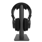 The H2 desktop headphone stand features a robust steel frame designed to complement larger on- and over-ear headphones. Its silicone cradle distributes weight evenly across headbands up to 3.5 inches wide and is specially contoured to prevent impressions and uneven wear. Ensuring maximum stability, H2 features a weighted steel base with silicone padding on the bottom to keep it firmly in place.