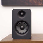 Grilles do not attach to the front of the speaker cabinets, and this gives the YU Passive series a nice, clean professional studio monitor look with a view of the woofer and the tweeter. The YU Passive 4” consists of a 4-inch Kevlar® woofer — but both models are complemented with the same 1-inch silk dome tweeter. Both models also feature a tuned bass port on the back of each cabinet to produce tight bass with low distortion, and high-quality Knurled speaker binding posts that connect with an integrated amplifier or a home theater receiver.