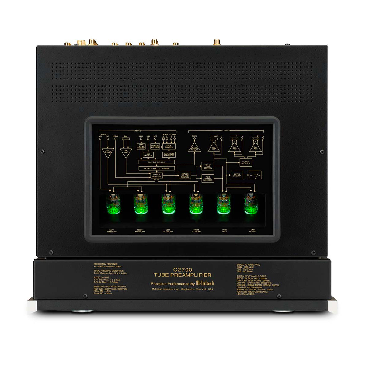 Following in a long line of revered McIntosh vacuum tube preamplifiers is the C2700 Tube Preamplifier. Using our well-established vacuum tube topology, the C2700 also features our advanced DA2 Digital Audio Module technology to combine cutting edge digital music capabilities with time tested vacuum tube performance.