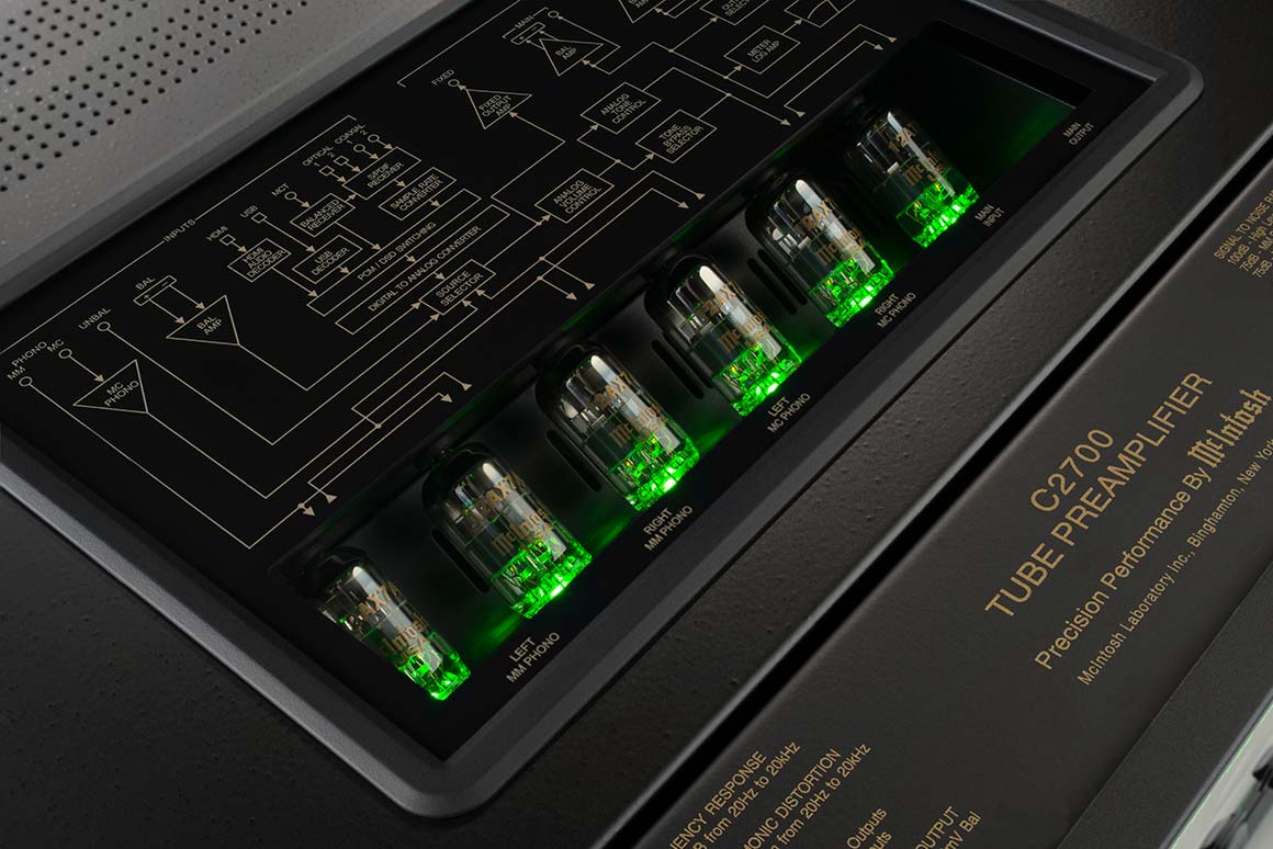 Following in a long line of revered McIntosh vacuum tube preamplifiers is the C2700 Tube Preamplifier. Using our well-established vacuum tube topology, the C2700 also features our advanced DA2 Digital Audio Module technology to combine cutting edge digital music capabilities with time tested vacuum tube performance.