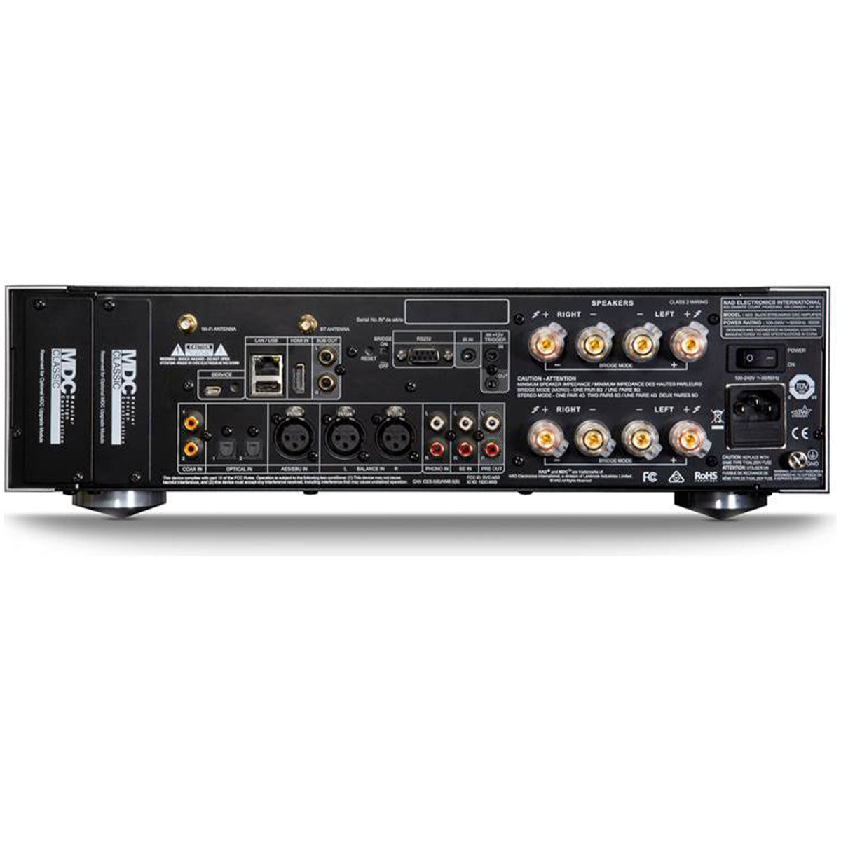 In its standard form, the M33 is very complete with a wide range of in/outputs, BluOS, Dirac, HDMI and more already fully integrated. It will meet the requirements of the most demanding users. To minimize the risk of future obsolescence, the M33 comes with two MDC (Modular Design Construction) slots that allow for further expansion. NAD introduced the MDC platform well over a decade ago and allowed updating products with new technologies which didn’t even exist at time of introduction.