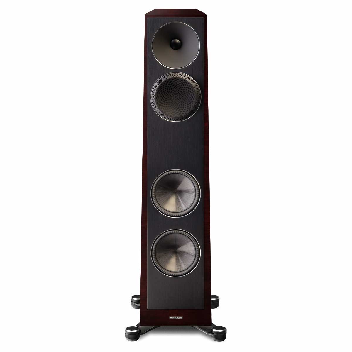 Any high-performance speaker driver (in this case, the tweeter) must be both very strong (to prevent distortion), and very light (to be agile, responsive, and accurate). This quest of design and engineering has led the industry to try many different exotic materials. Some of them found practical application and many did not. AL-MAC is Paradigm's unique blend of Aluminum, Magnesium, and Ceramic materials; each of which contribute to the end goal of greater accuracy and realism. Their special properties contribute to the final product which is not only strong and lightweight, but embodies a natural anti-resonance to ensure the tweeter doesn’t just sound good “on paper” but truly sounds incredible in the real world. Cutting edge technology, with real benefits, in practical applications - this is what the Founder Series is all about.