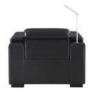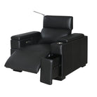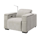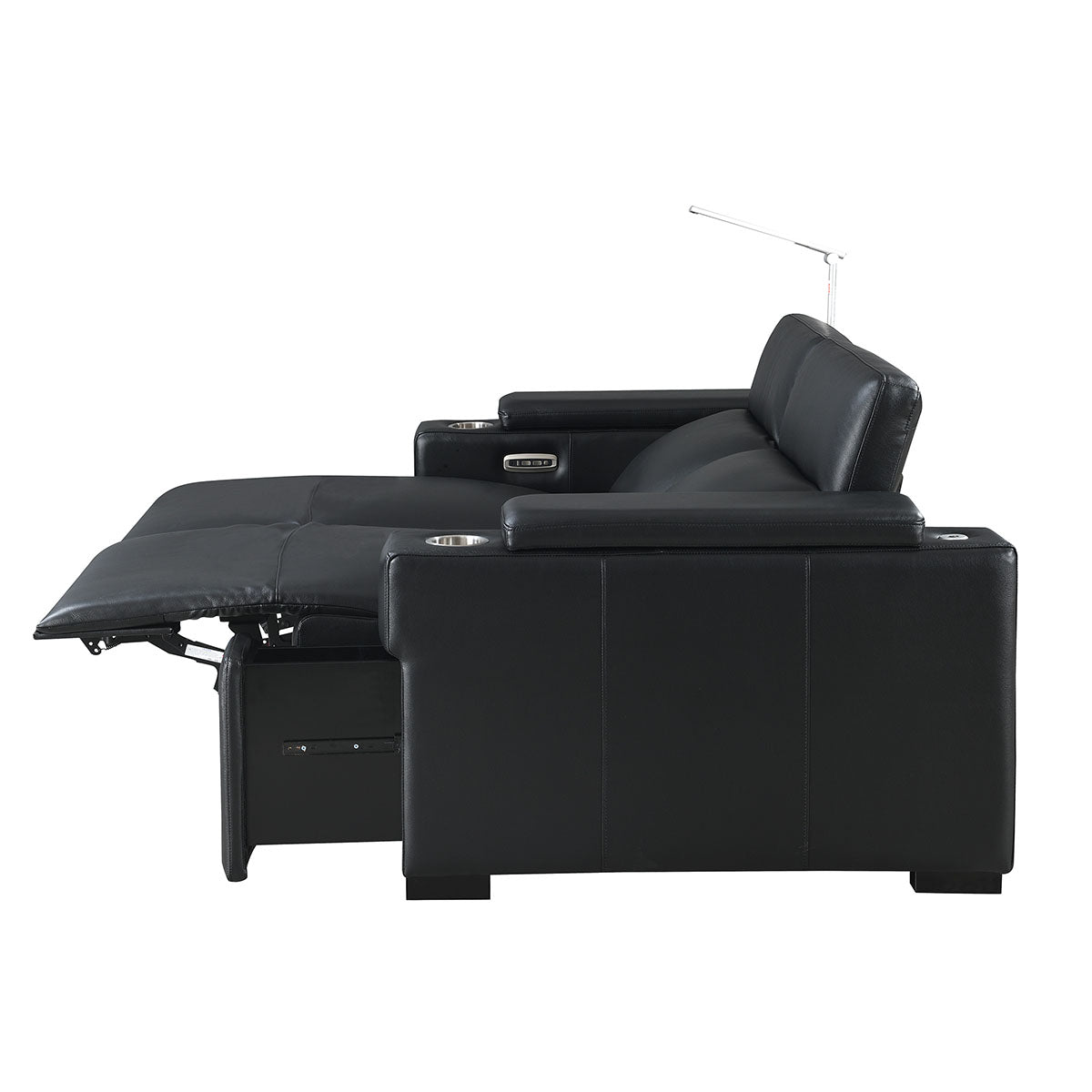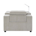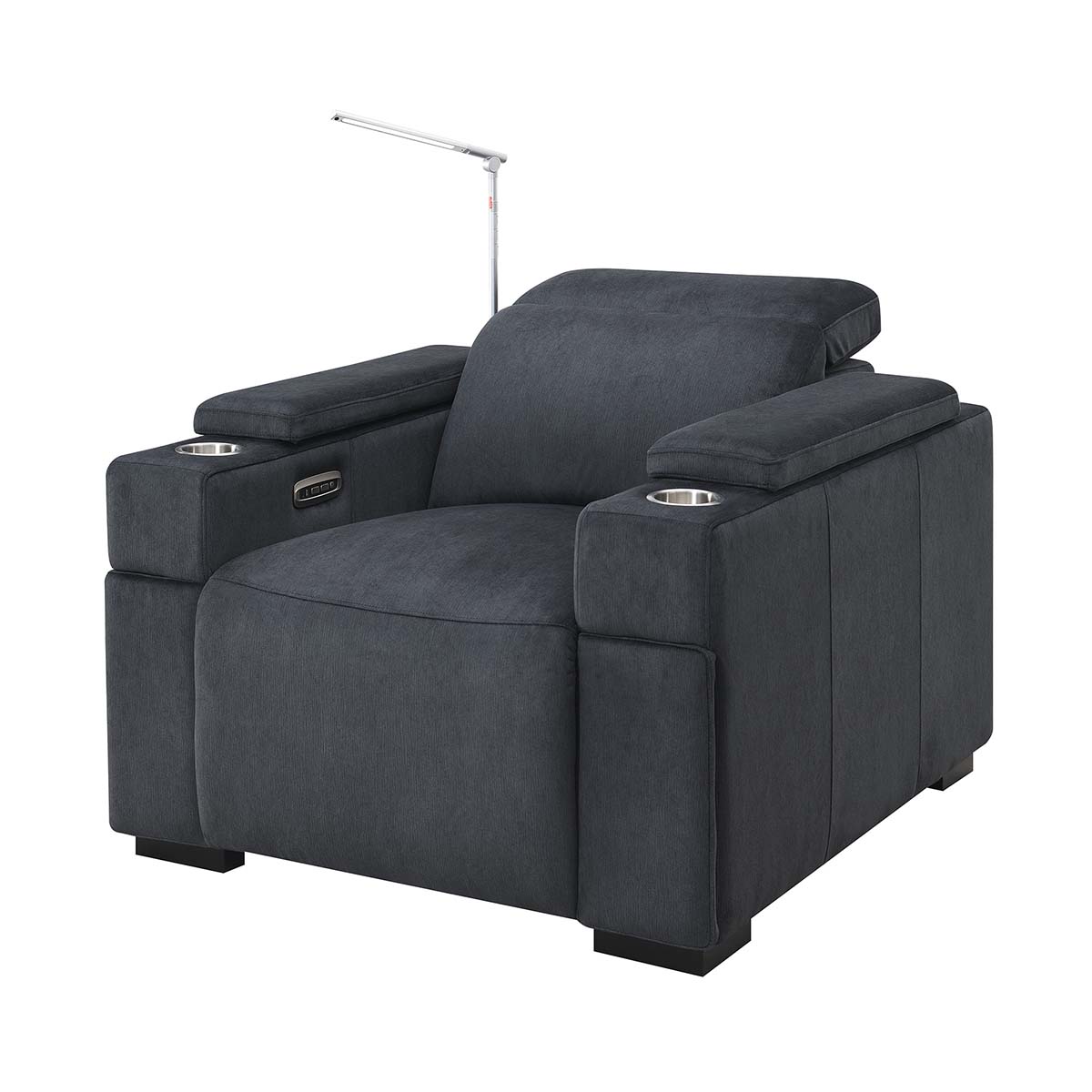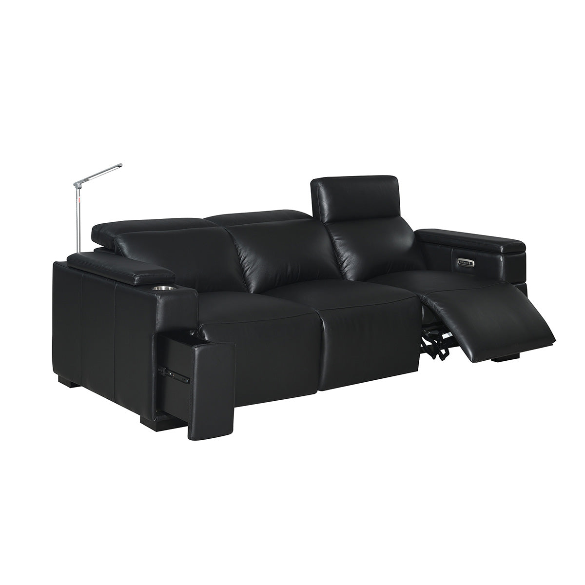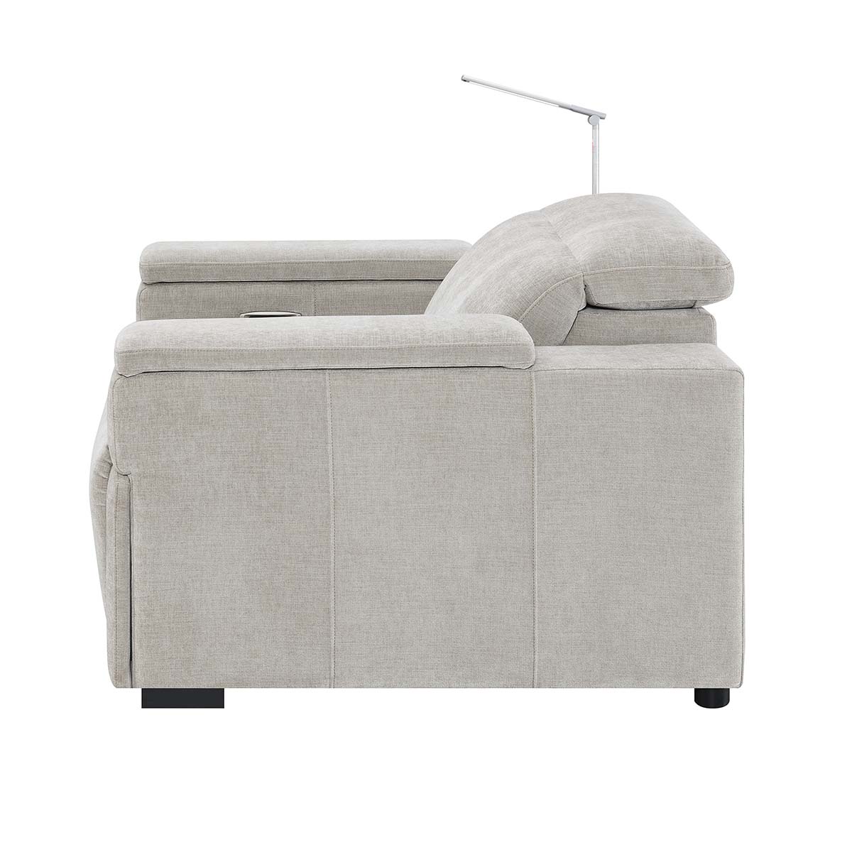 The Calveri also boasts a host of hidden features designed to enhance your experience. Nestled discreetly beneath the armrest, a spacious drawer effortlessly slides out, providing ample storage for remotes, beverages, snacks, cables, and more—keeping everything you need close at hand yet neatly tucked away.