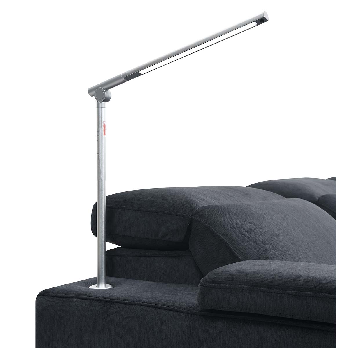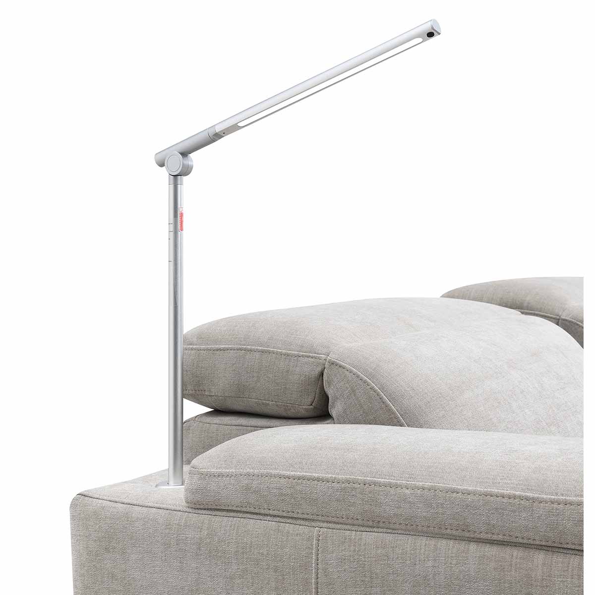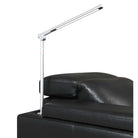 But that's not all; the armrest also accommodates the Calveri's stylish reading lamp. The lamp is a sleek light reminiscent of a mini lightsaber that conveniently folds up when not in use. When needed, simply unfold it and slot it into a designated power port behind the armrest. The best part? No messy wires. The chair powers the light through contact points on the base of the lamp. With three adjustable brightness levels, activating and customizing the illumination is as easy as a touch. The reading lamp adds versatility with its swivel capability—move it left, right, up, down, or sideways to direct the light wherever you desire. Features like this really show that the Calveri doesn't just offer comfort; it provides a seamless blend of functionality and elegance.