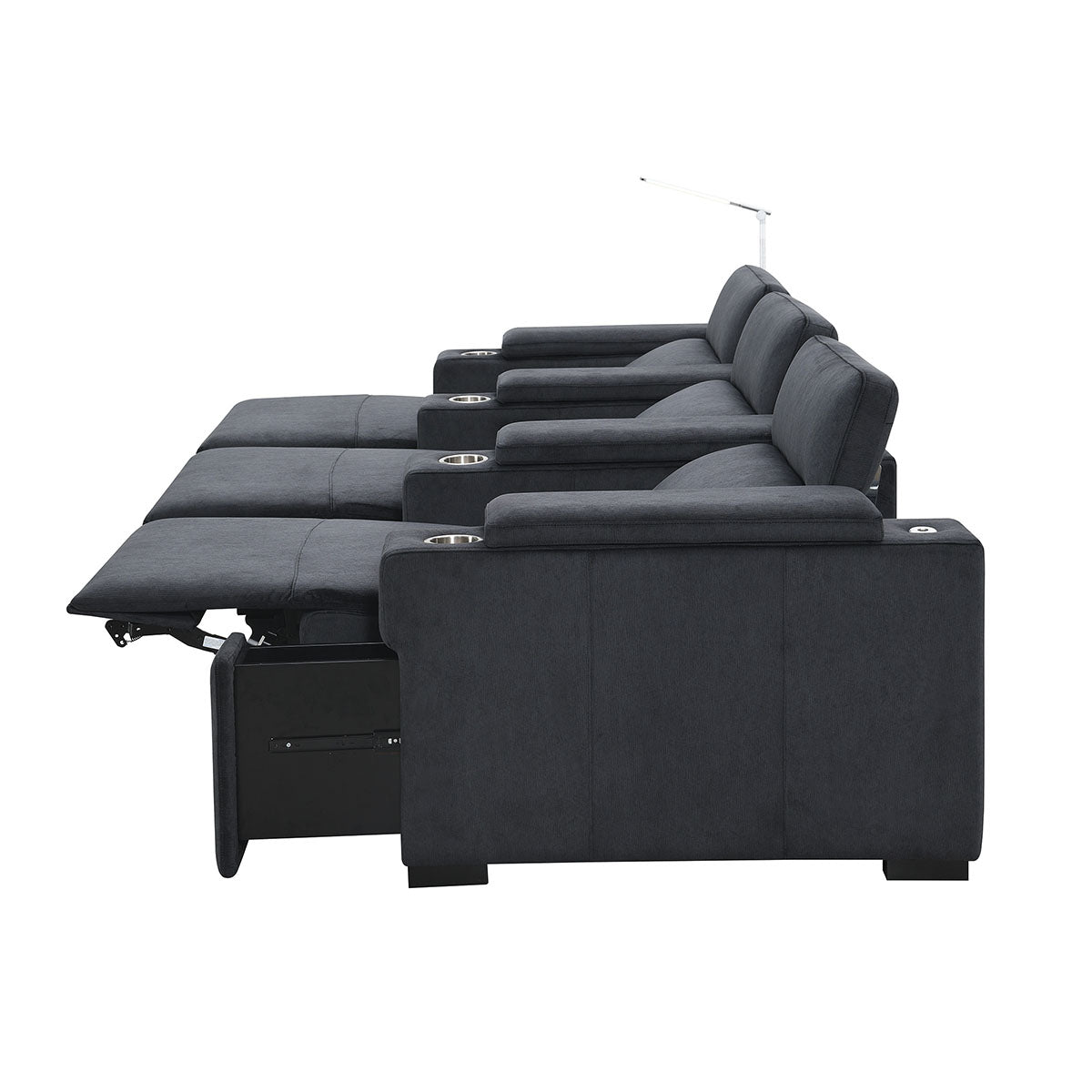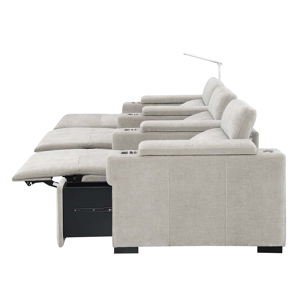 It’s also important to note that when you add a middle chair without arms to create a couch, the middle chair will still have power and recline just like the others! The buttons will be tucked away on the side of the cushion.
