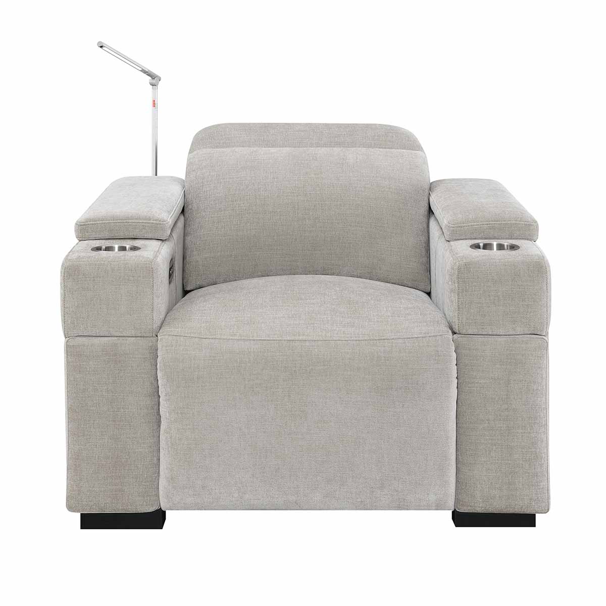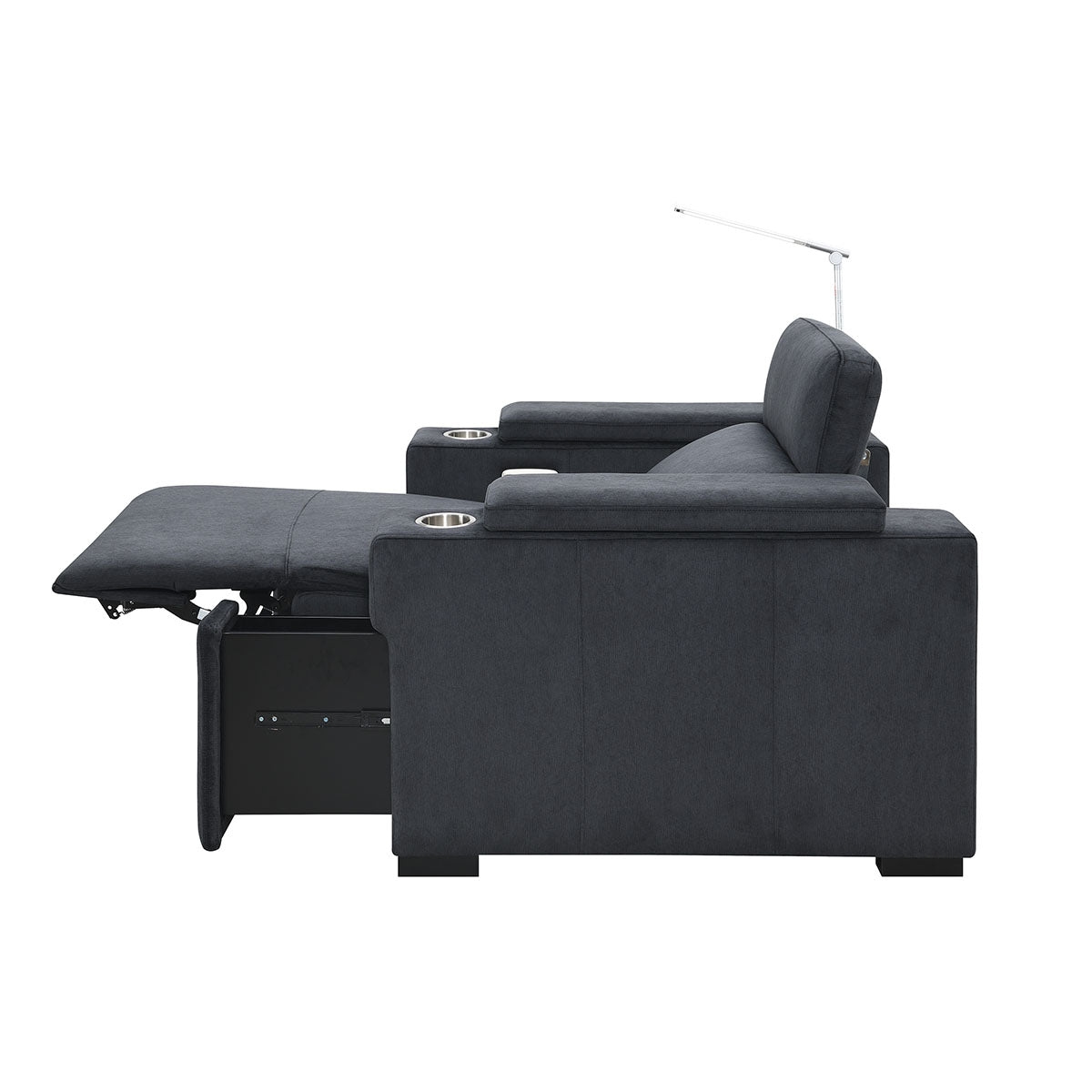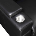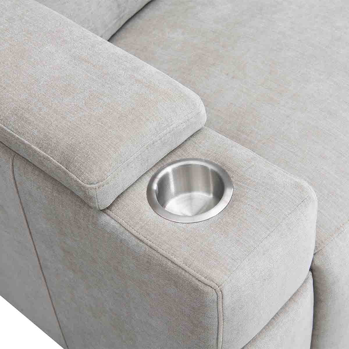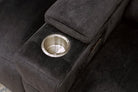 Another feature that most home theater chairs have is a cupholder to hold your beverage while watching a movie. The downside is that cupholders in your chair may not be the most aesthetically pleasing in a modern or contemporary room. The Calveri has solved this problem by having a cupholder in the armrest but has a piece on the top of the armrest that slides forward and back, which will cover the cupholder when it’s not in use. This allows you to use it when needed and cover it back up to keep that clean, aesthetically pleasing look. To us, it’s small features like this that really make the Calveri stand out as a great alternative to a standard home theater chair.