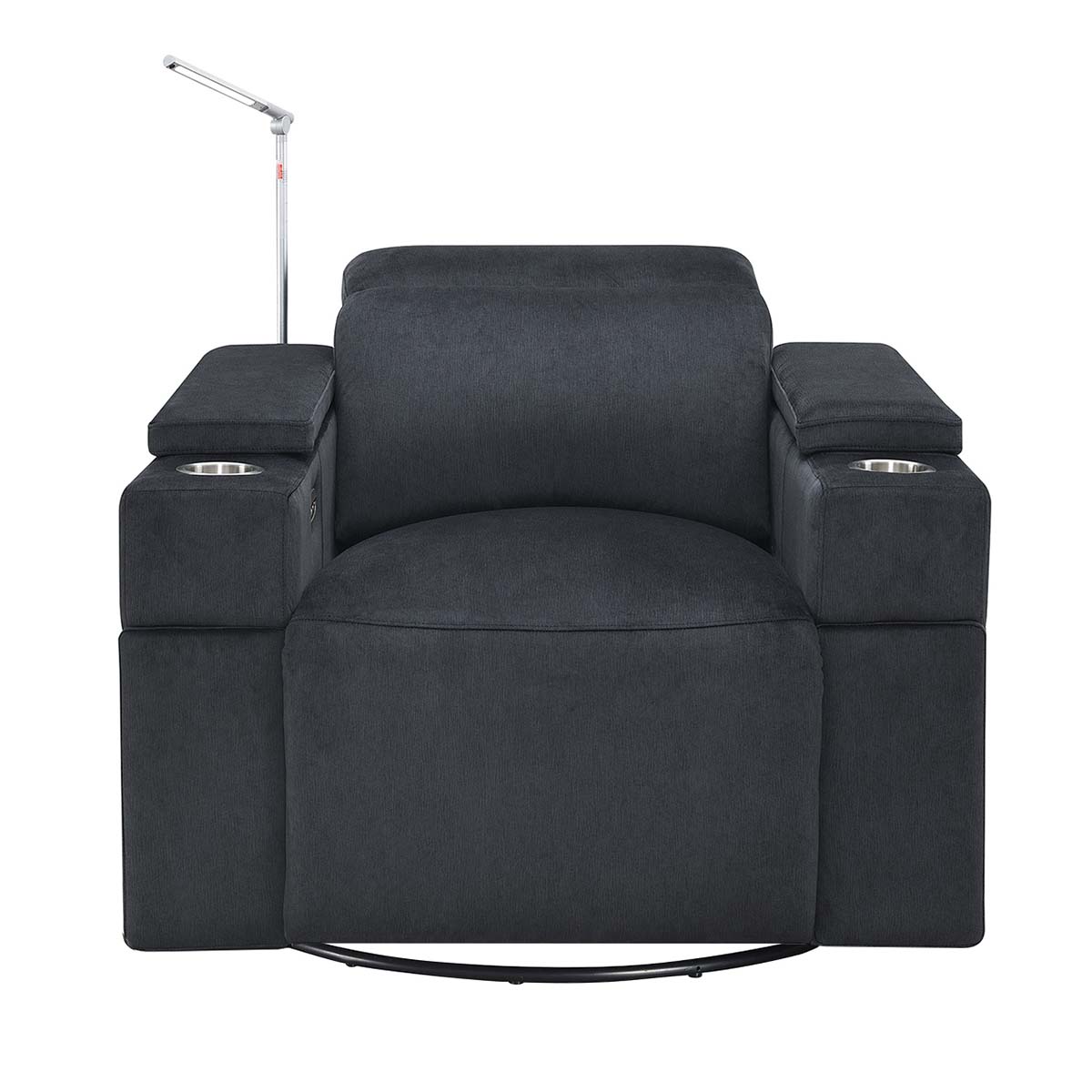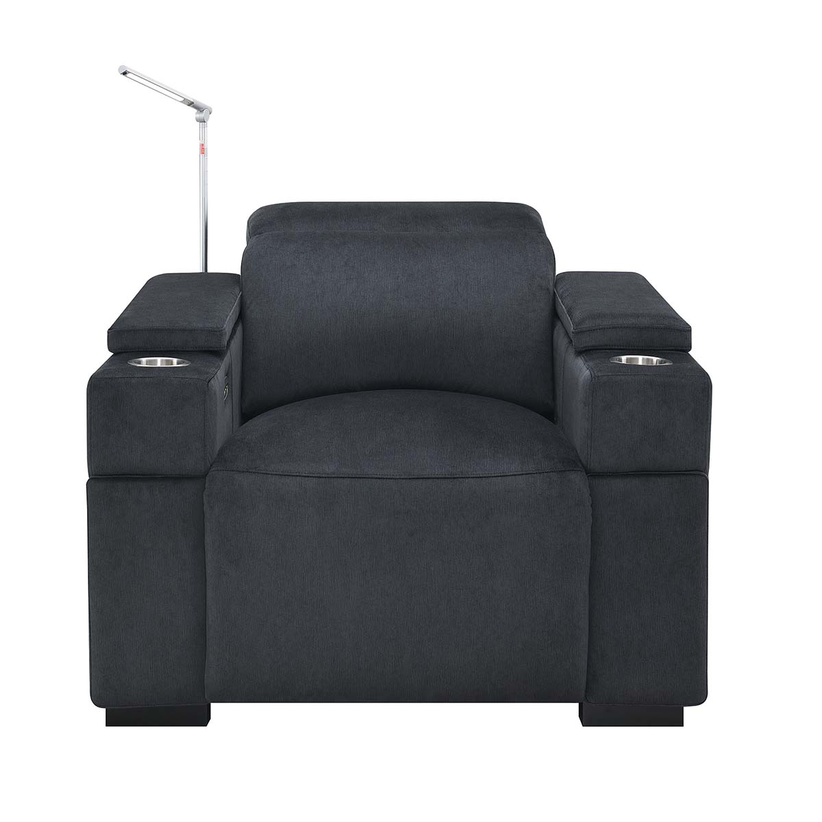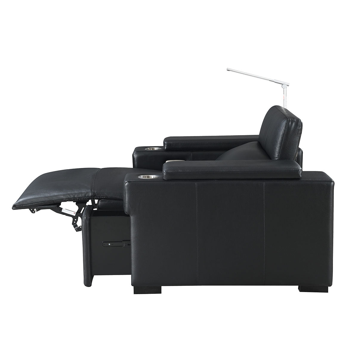 Another feature that most home theater chairs have is a cupholder to hold your beverage while watching a movie. The downside is that cupholders in your chair may not be the most aesthetically pleasing in a modern or contemporary room. The Calveri has solved this problem by having a cupholder in the armrest but has a piece on the top of the armrest that slides forward and back, which will cover the cupholder when it’s not in use. This allows you to use it when needed and cover it back up to keep that clean, aesthetically pleasing look. To us, it’s small features like this that really make the Calveri stand out as a great alternative to a standard home theater chair.