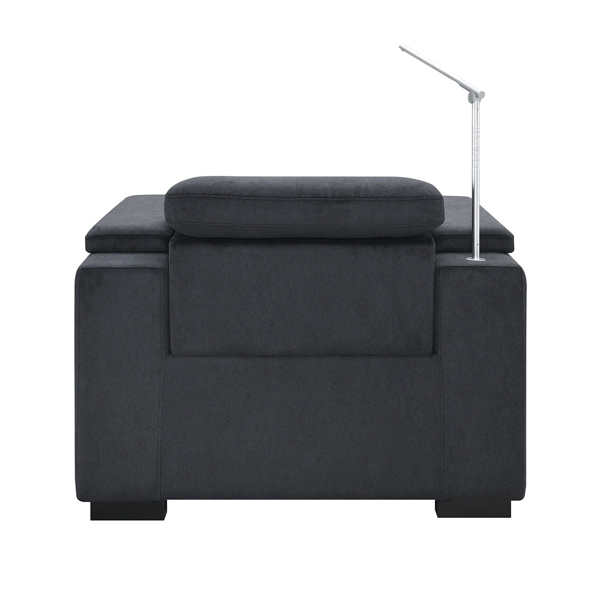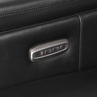 There is a button to control the headrest to go up and down, another button to control the leg rest to go up and down, a home button that you hold to bring it back to its standard setting, a USB-A port, and a USB-C port to charge your phone or tablet with. For all furniture that has USB ports inside the chair, you must be careful when plugging in your device here, as you could potentially hit the port with your leg and damage your cord if you are not cautious. We’ve found that most people don’t use the charging ports in theater chairs, but these chairs are wide enough that if you do choose to use them, the risk of snagging the connection is reduced.