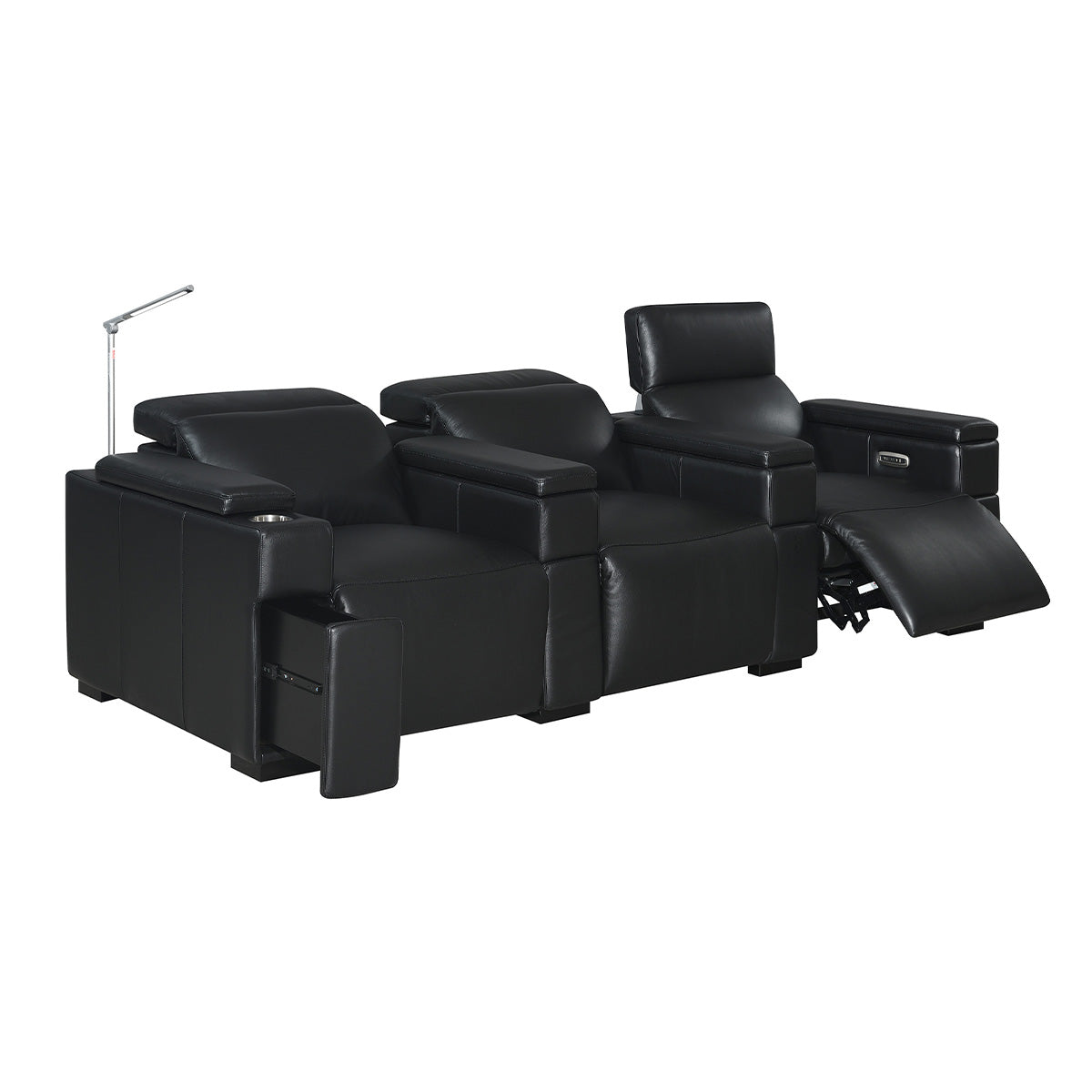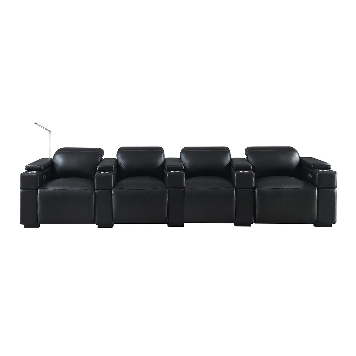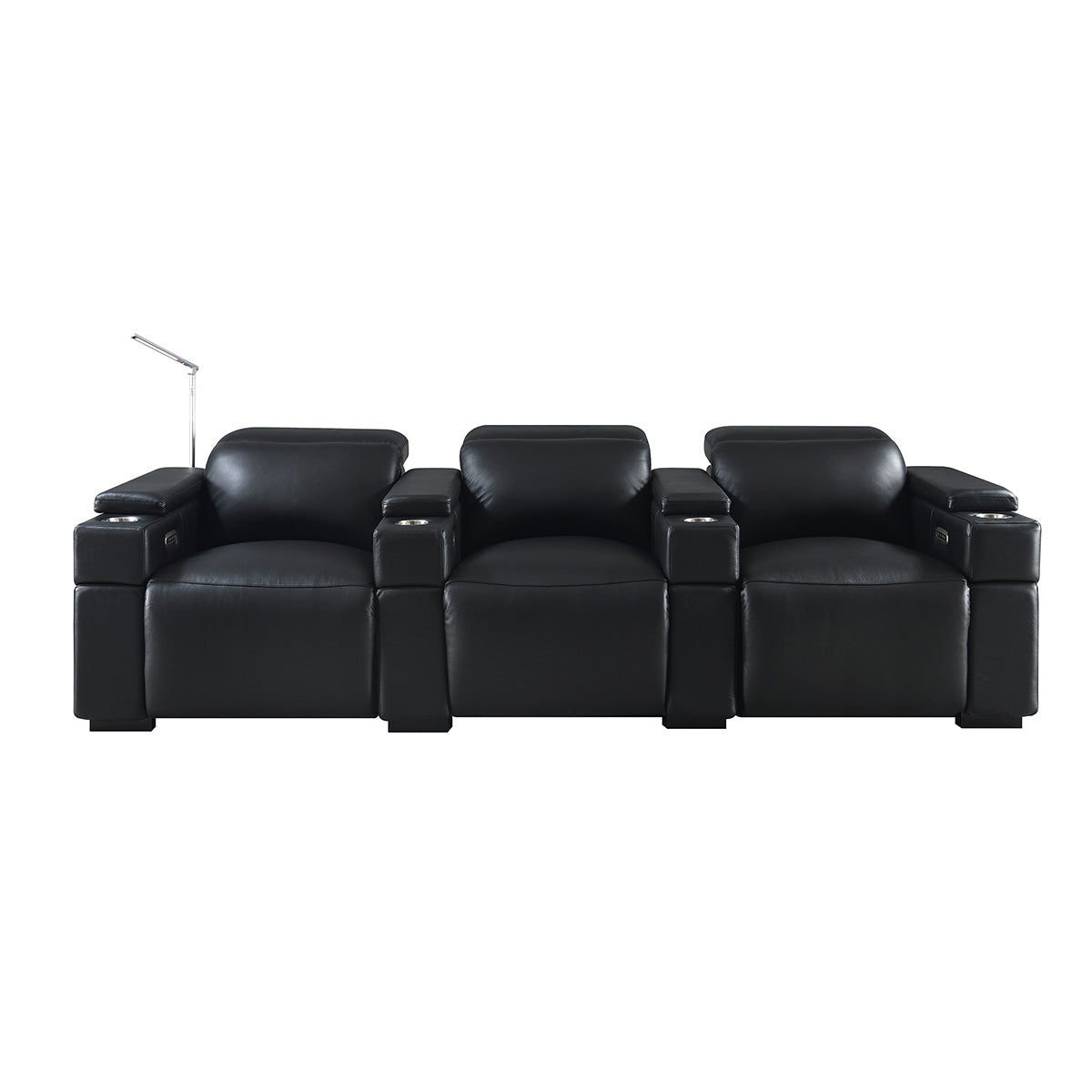 The Calveri has many different configuration options, so you can set them up to fit your specific room. They are offered in a two arm chair with standard feet, two arm chair on a swivel base, two chair loveseat, three chair sofa, three chair row, and pretty much any configuration in between that you may want to build. We highly recommend contacting our team of home theater design experts for additional help deciding which setup would be the best for your room.