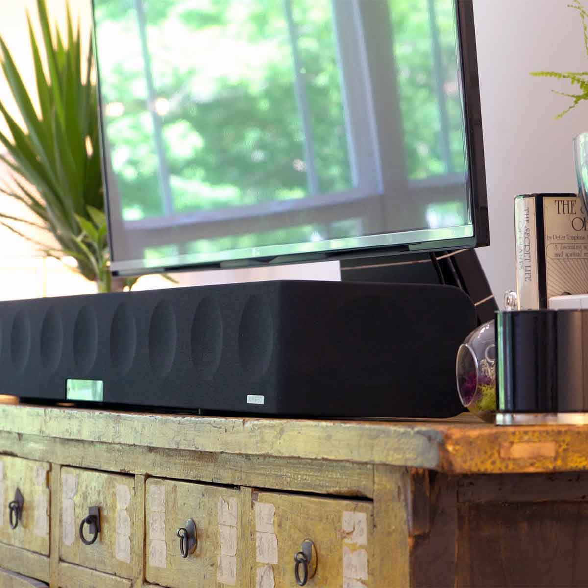 If you like keeping your living room clean and simple without any compromises to your studio-grade experience, AMBEO is hard to beat. Harnessing its power from 13 high-end drivers to present audio across the frequency spectrum in a sleek all-in-one design, Sennheiser gives you 5.1.4 channels of Dolby Atmos surround sound plus a single channel for the sub-bass frequencies — all coming out of just the AMBEO.