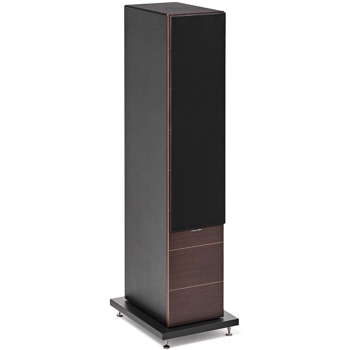 All of the models share the same tweeter. This is actually identical to the tweeter in their more expensive Sonetto series. If you look closely at the soft silk diaphragm you will see a small vertical assembly that barely touches the very apex of the tweeter. At the point of contact, it is cone-shaped. Fabric dome tweeters have phase anomalies that occur right at the apex of the dome. Silk dome tweeters have always had a great sound but this cancellation caused some high-frequency roll-off. Many speaker companies have moved to metal dome tweeters to get more extension, but there is something magical about the sound of a silk dome. By ever so slightly pressing in on the dome at the very apex, these cancellations do not happen and you get far more extension. This is a very creative idea the engineers at Sonus Faber came up with that you will see in all of the speakers. Their innovative technology allows for a more extended yet very smooth and natural high-frequency presentation, which has become part of the legendary Voice of Sonus Faber.