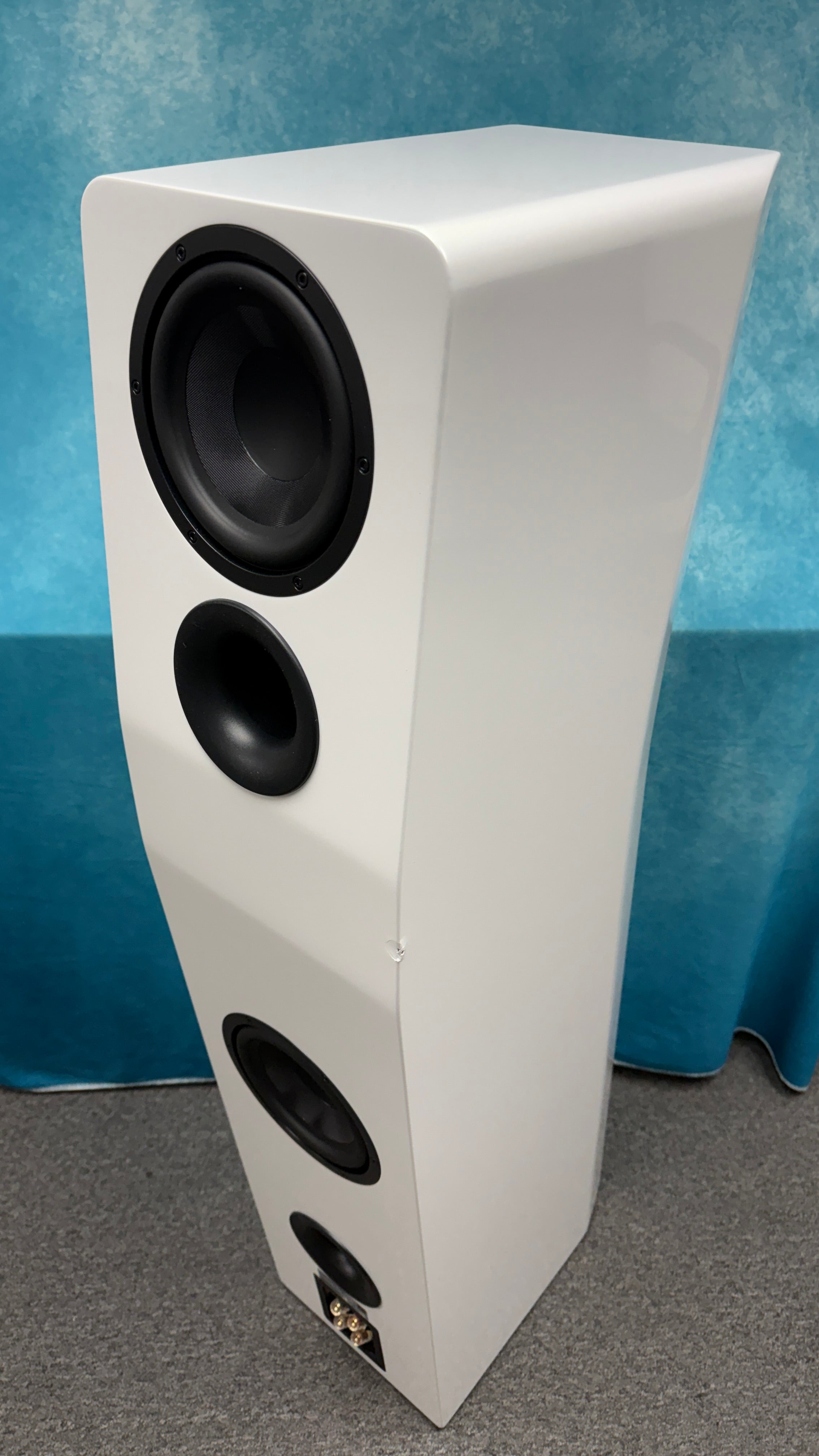- Curved front baffle aligns the sonic emanation point of all drivers on a vertical plane ensuring sound from each driver reaches your ears at the exact same instant.