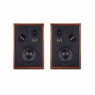 These bookshelf speakers are 14.17" x 9.69" x 11.61" each and weigh just over 20 lbs. This means while the Super Denton is designed for high-performance fidelity, it is also designed to fit into rooms and systems their larger models wouldn’t work in. Real wood veneers and a vintage-looking cloth grill finish off the classic looks and offer a finished quality above their price point.